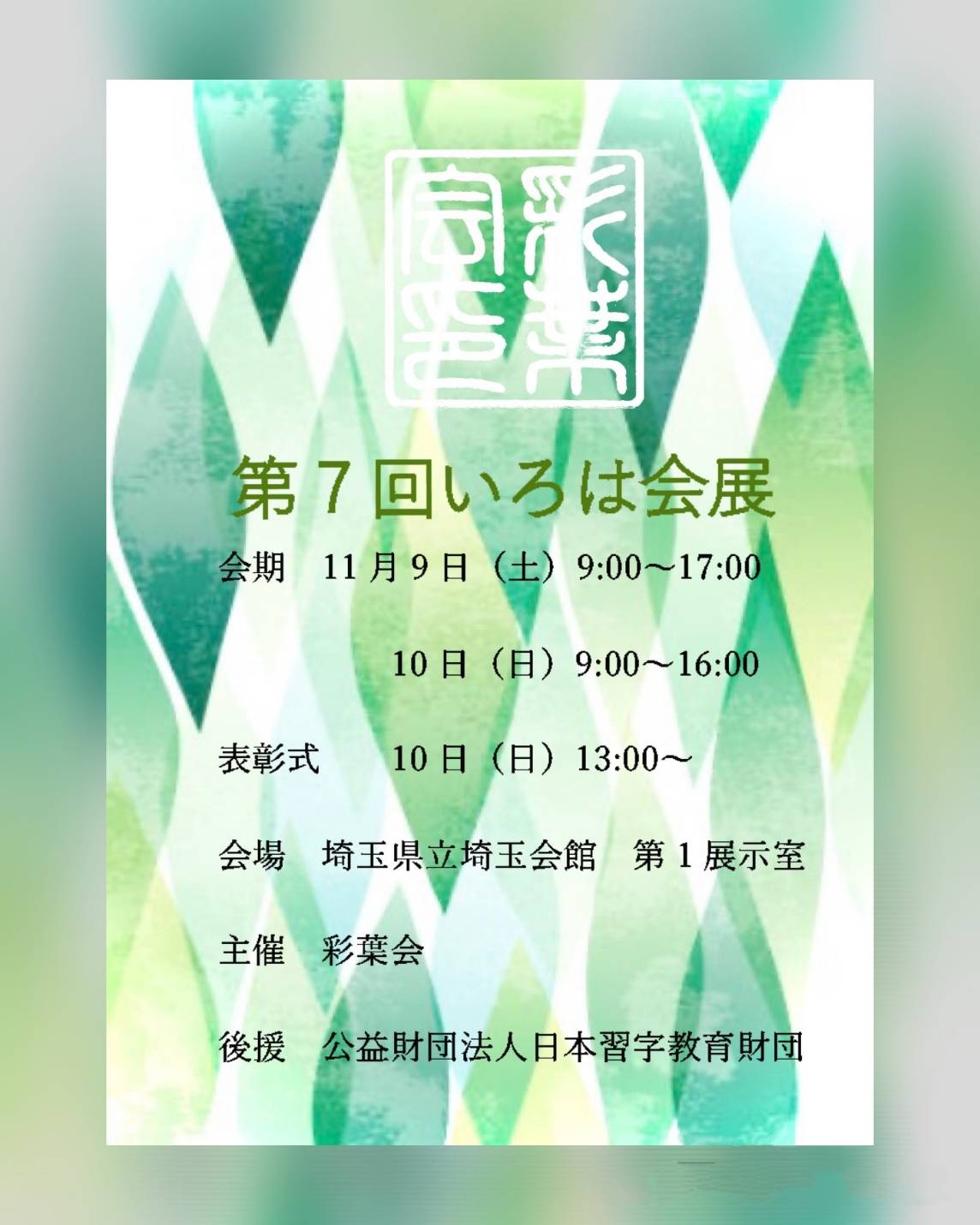 先日行われた「第7回 いろは会展」にて、本作品を師範作品として出品しました。